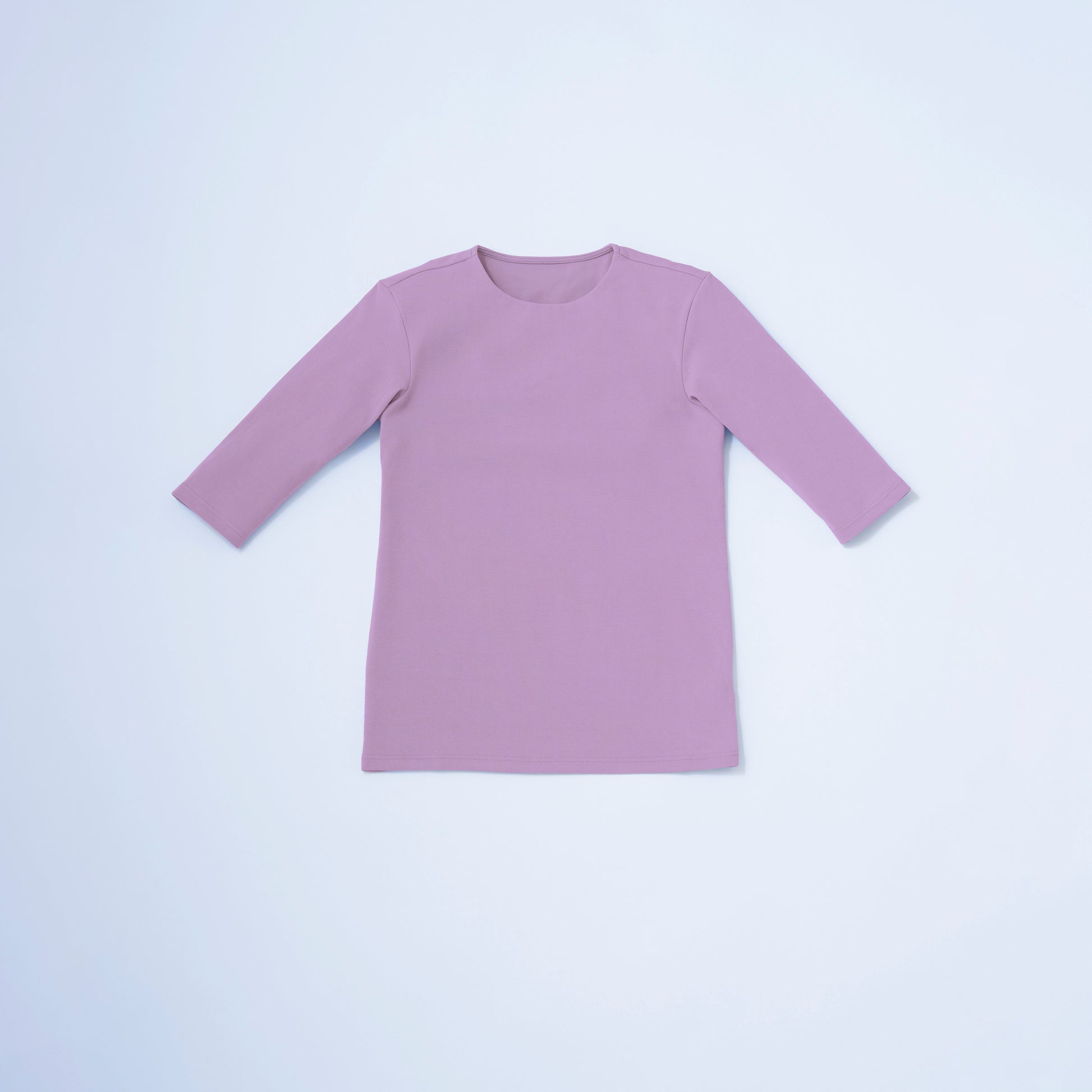 インナーが透けにくいダブルフロント仕立ての5分袖Tシャツ。 1枚でもジャケットなどのインナーとしても使いやすいすっきりとしたフィット感がポイント。 ネックラインは縫い目を出さない袋縫いを採用し、上品な印象に仕上げています。