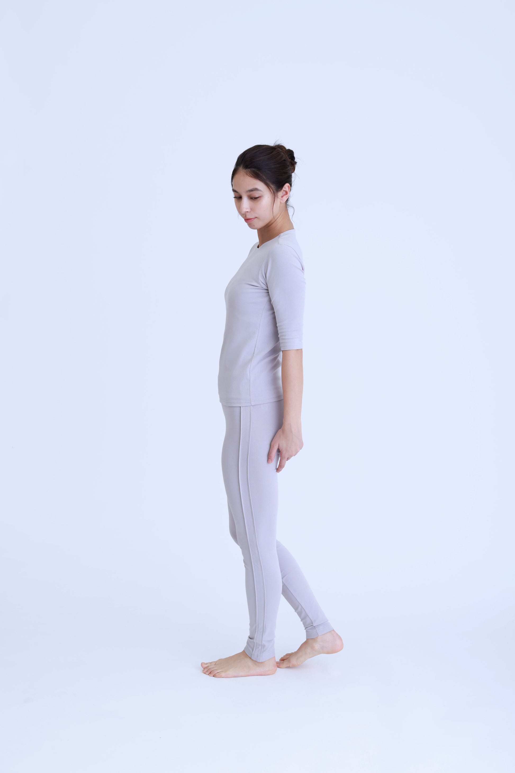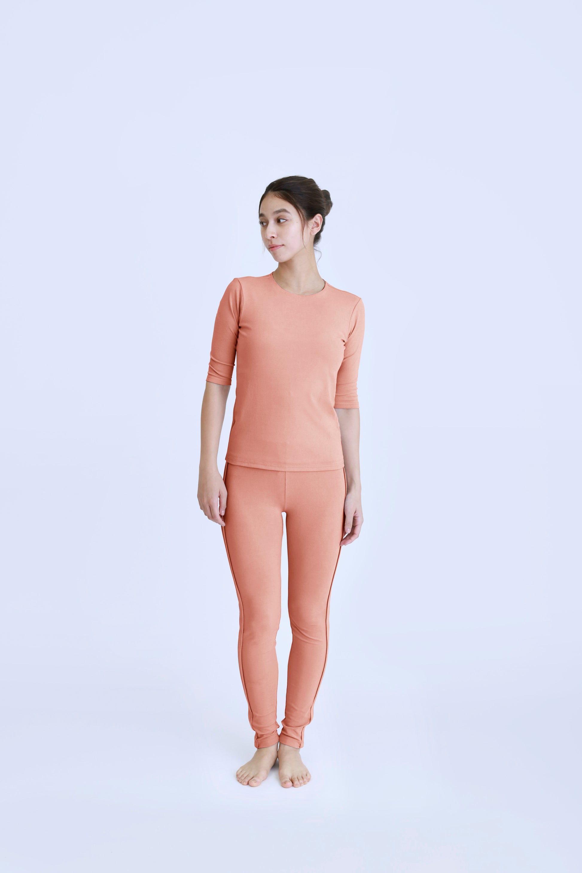 1枚でもジャケットなどのインナーとしても使いやすいすっきりとしたフィット感がポイント。
