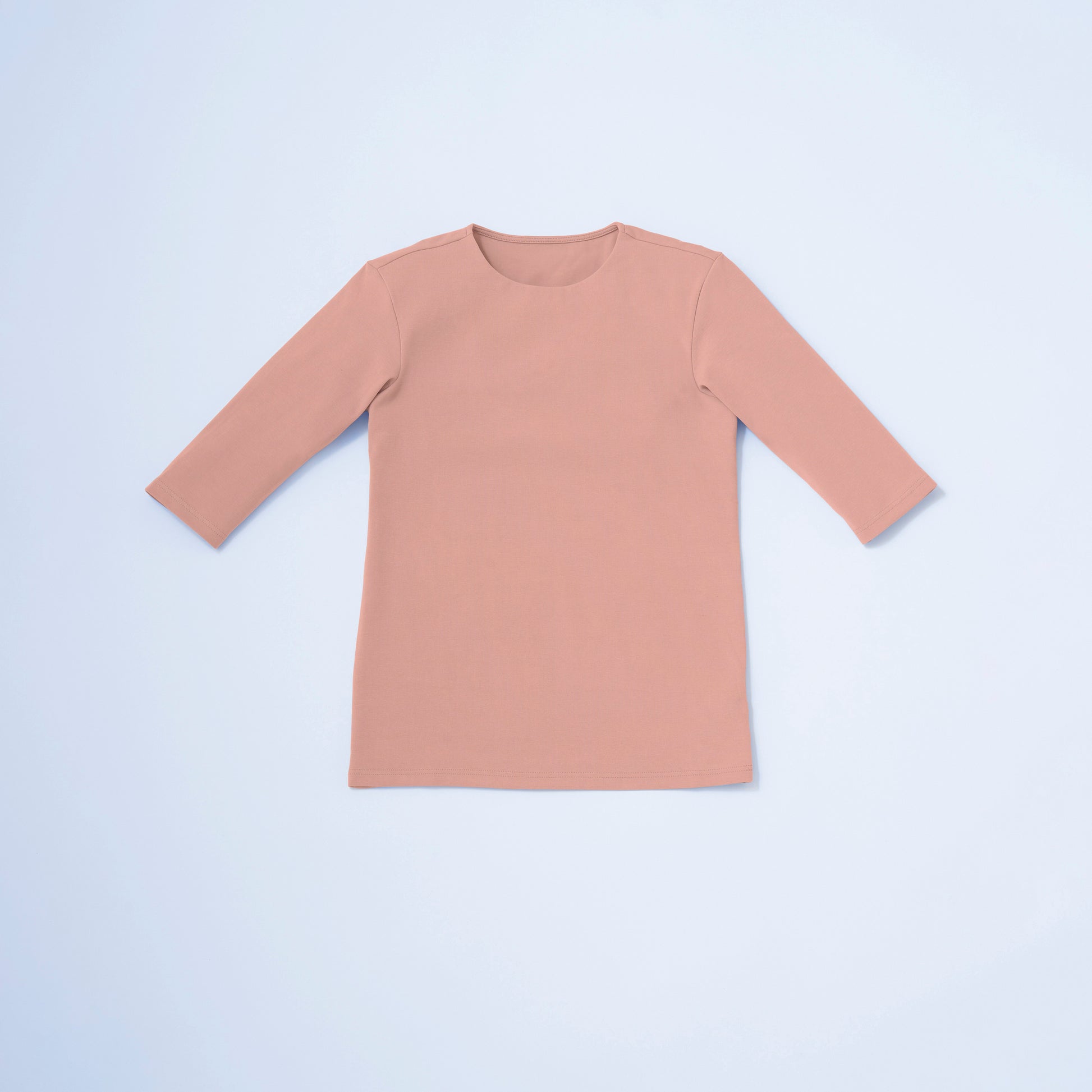 インナーが透けにくいダブルフロント仕立ての5分袖Tシャツ。