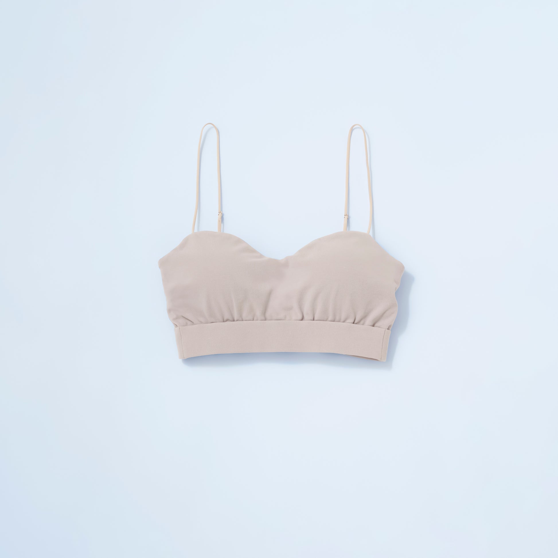 胸元を美しく見せるカーヴィなラインで立体的に仕上げたブラトップ。華奢なストラップを採用しているため下着見えしにくく、肩のラインが見えるノースリーブスタイルのインナーとしてもおすすめです。取り外し可能なパット入り。