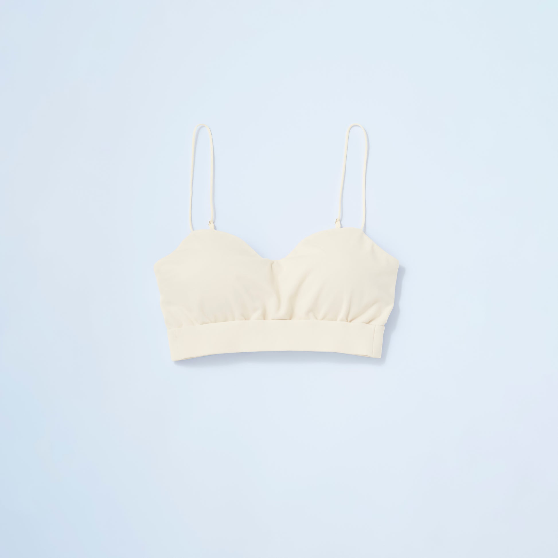 胸元を美しく見せるカーヴィなラインで立体的に仕上げたブラトップ。華奢なストラップを採用しているため下着見えしにくく、肩のラインが見えるノースリーブスタイルのインナーとしてもおすすめです。取り外し可能なパット入り。